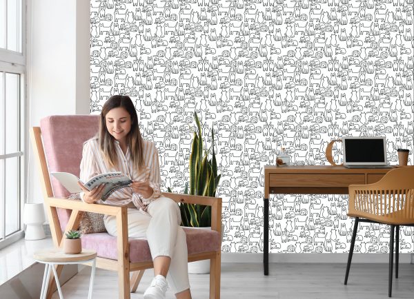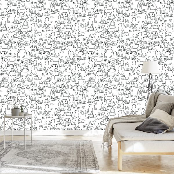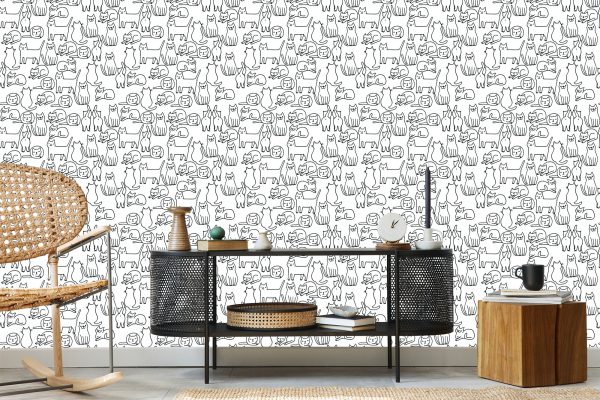 Papier Peint Chats En Noir Et Blanc