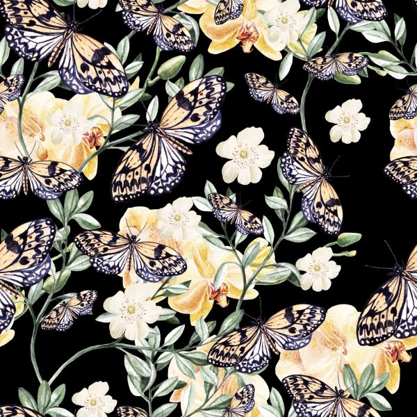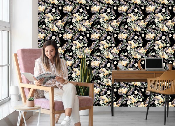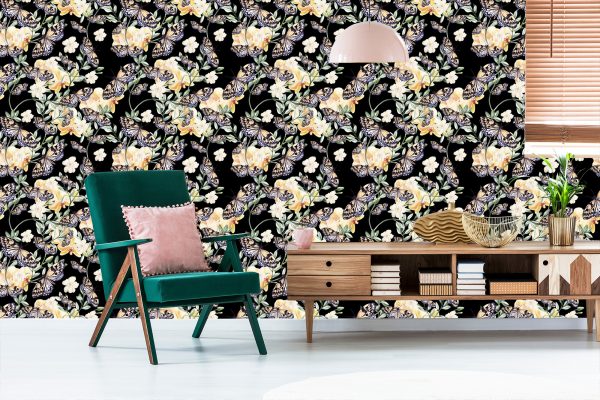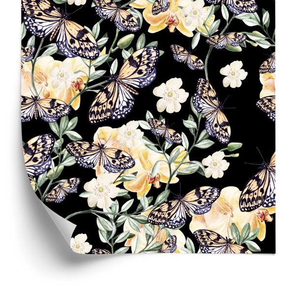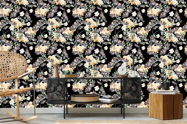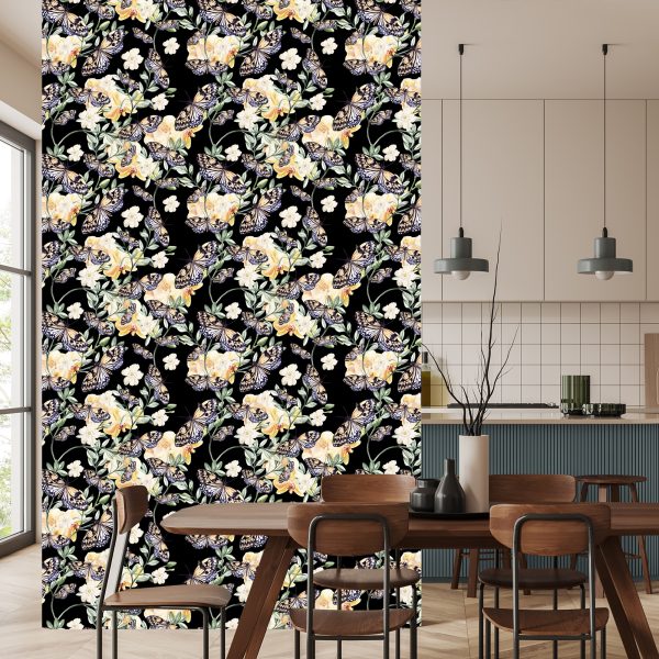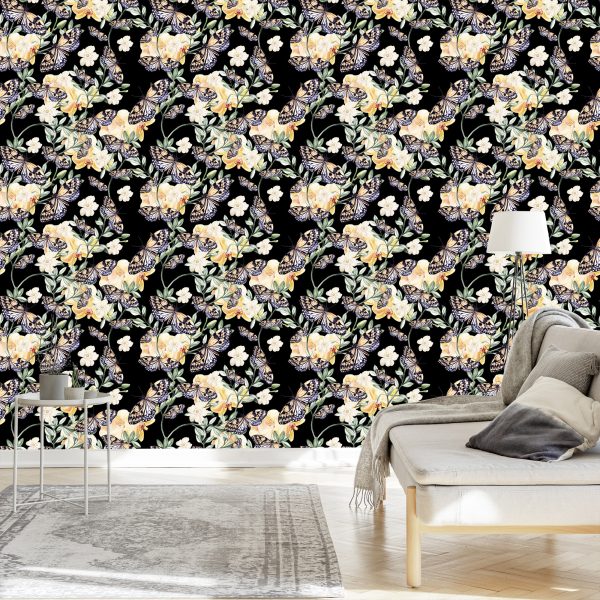 Papier Peint Dans Le Hall, Des Papillons, Des Fleurs Nature