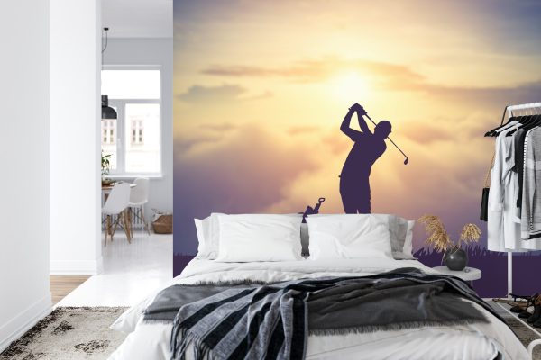 Papier Peint Golfeur, Sur, Les, Coucher Soleil, Fond