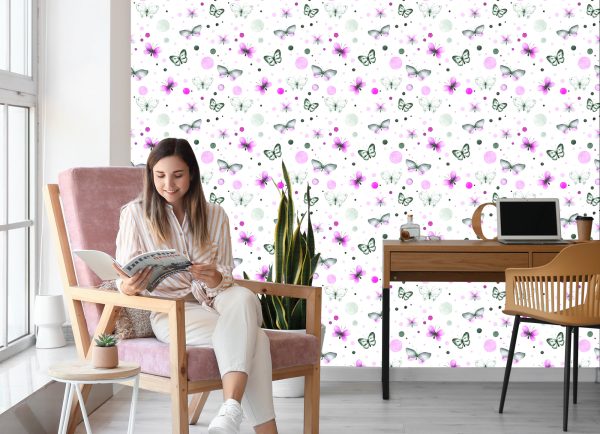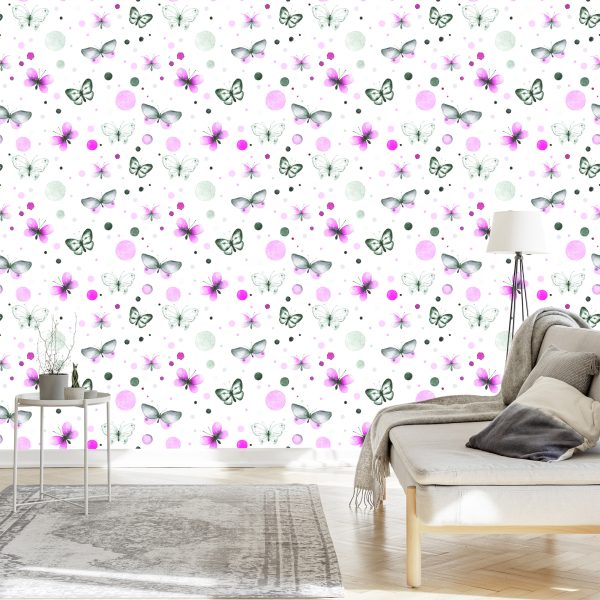 Papier Peint Mur Pour Chambre De Bébé Papillons – Pois