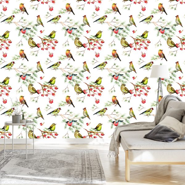 Papier Peint Oiseaux Multicolores Perchés Sur Des Branches