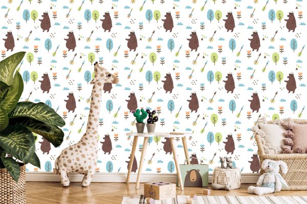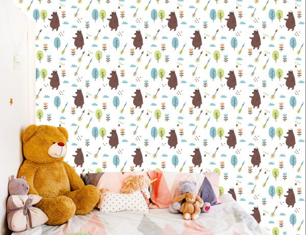 Papier Peint Ours Nuages Arbre Garçon Chambre