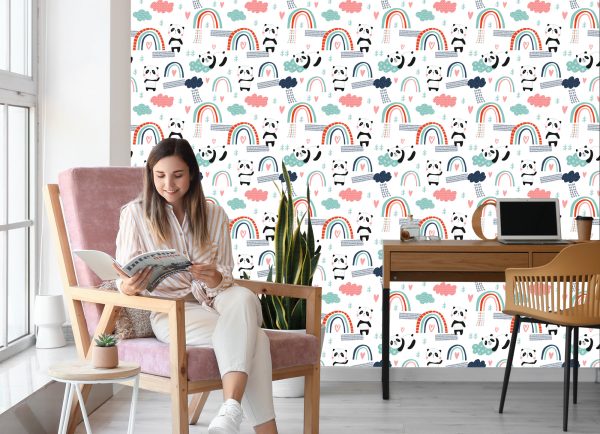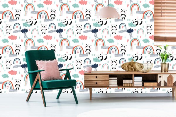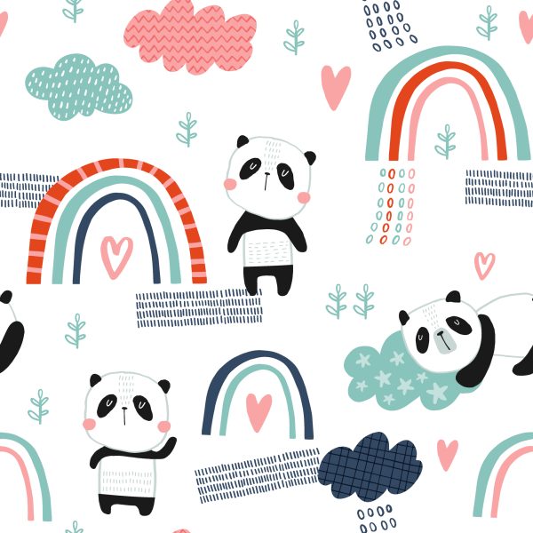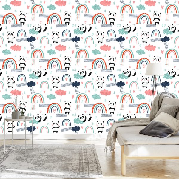 Papier Peint Pandas Avec Un Arc-En-Ciel En Arrière-Plan