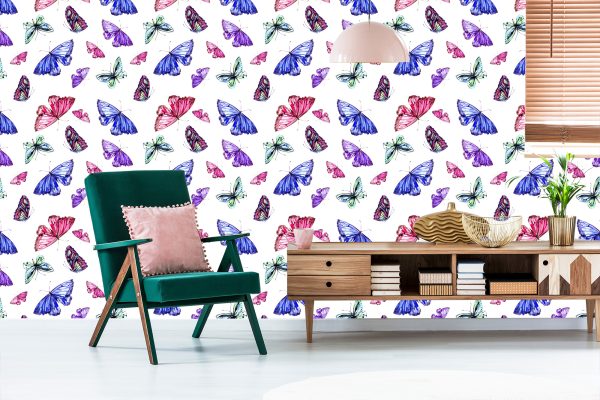Papier Peint Papillons Colorés Nature Chambre D'enfants