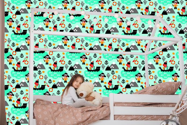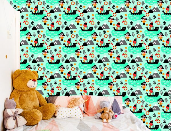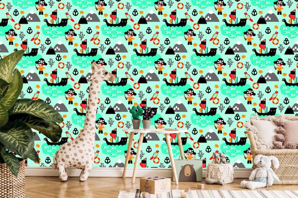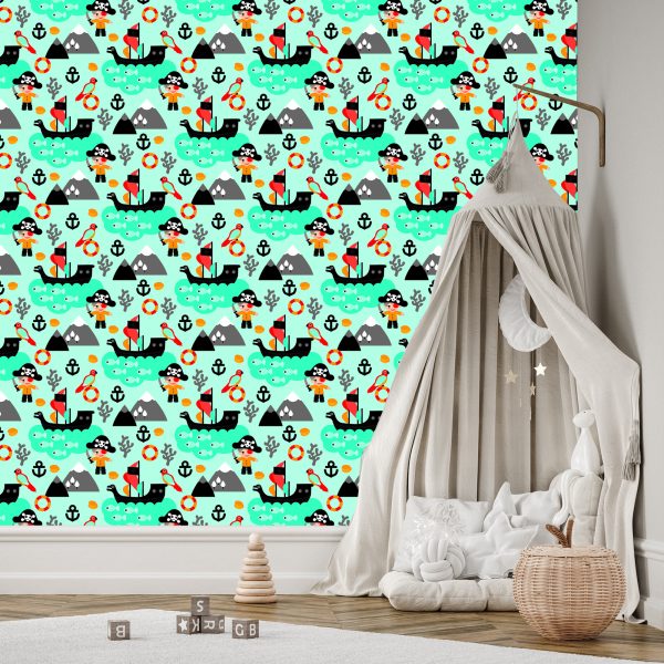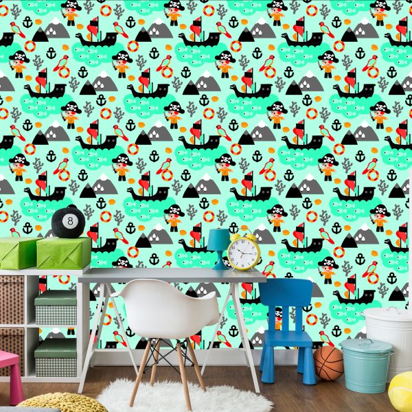 Papier Peint Pour Garçon Oiseaux De Mer, Bateaux Pirates