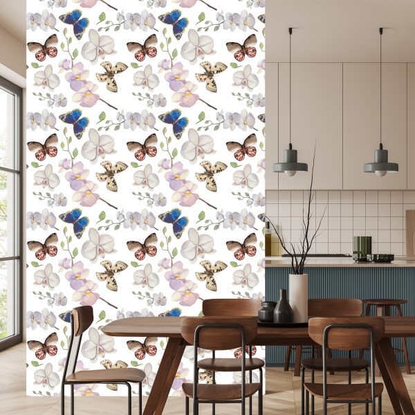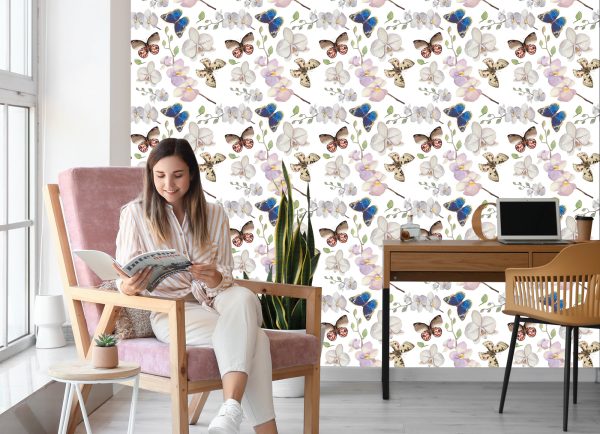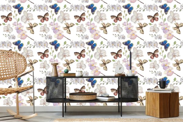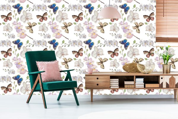 Papier Peint Pour La Chambre De Bébé Papillons, Fleurs, Plantes