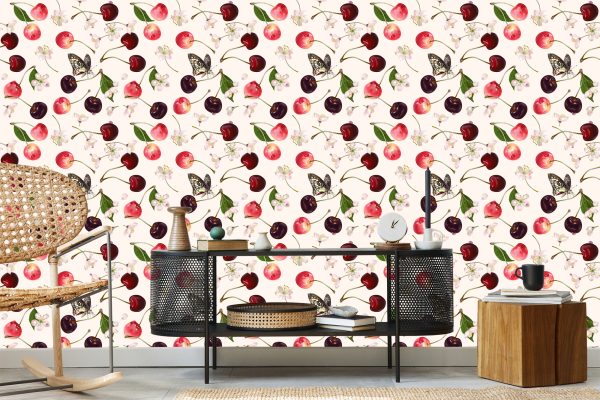 Papier Peint Pour La Cuisine, Les Fruits, Les Cerises, Les Fleurs, Les Papillons