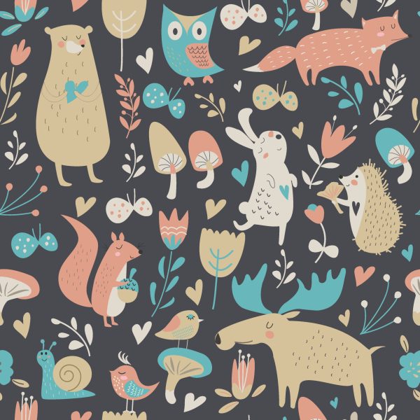 Papier Peint Pour Les Enfants – Animaux Et Plantes De La Forêt