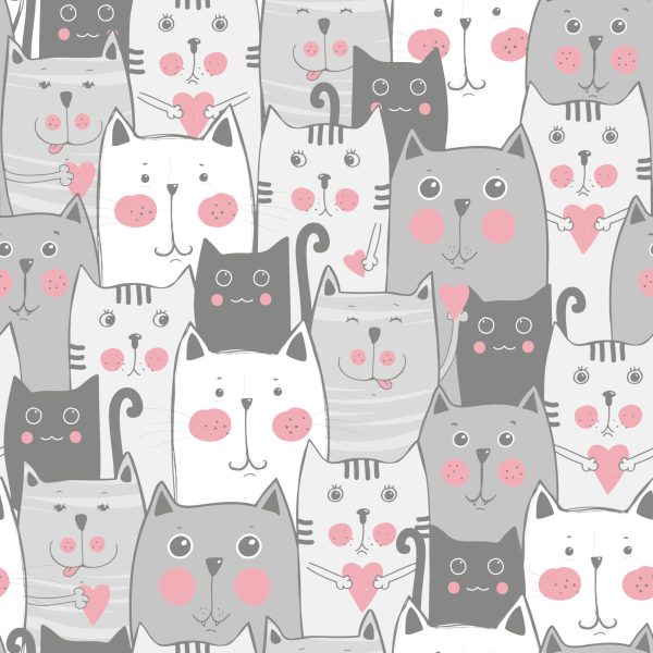 Papier Peint Pour Les Enfants – Chats Et Coeurs