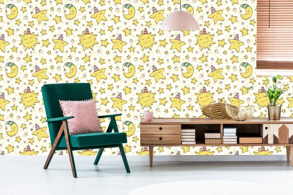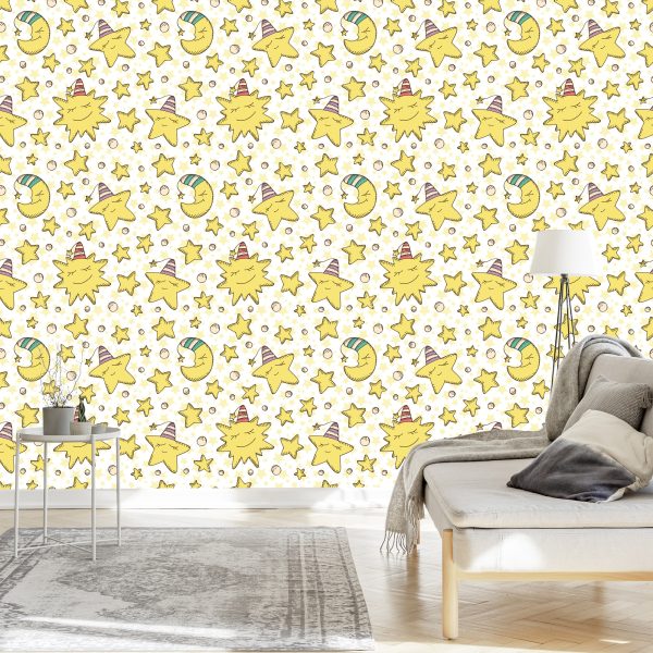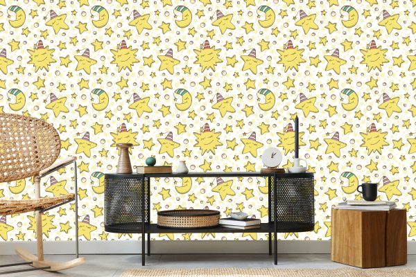 Papier Peint Pour Les Enfants – Étoiles Et Lunes