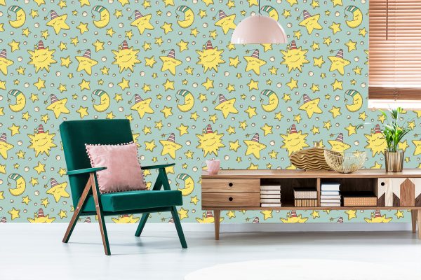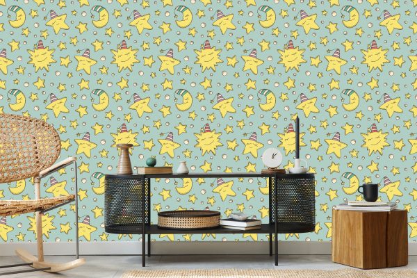 Papier Peint Pour Les Enfants – Étoiles Et Lunes