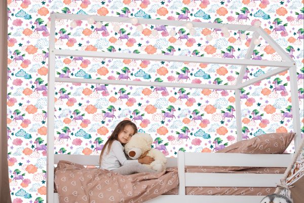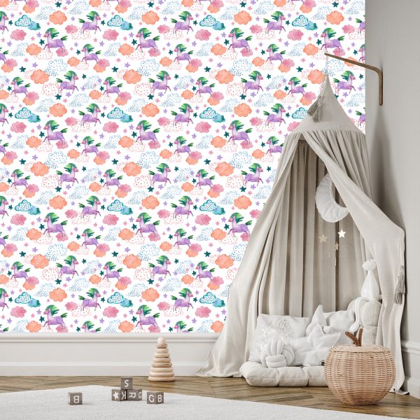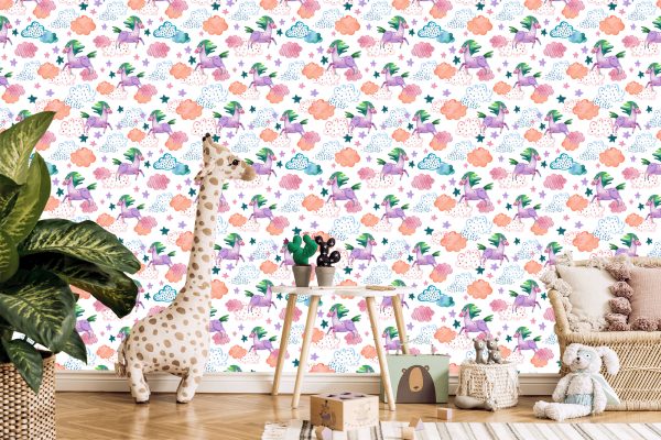 Papier Peint Pour Les Enfants – Licornes Colorées Au Style Scandinave