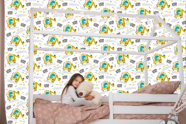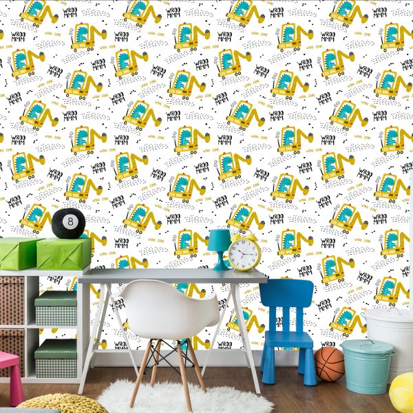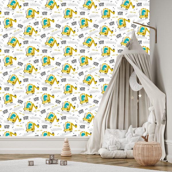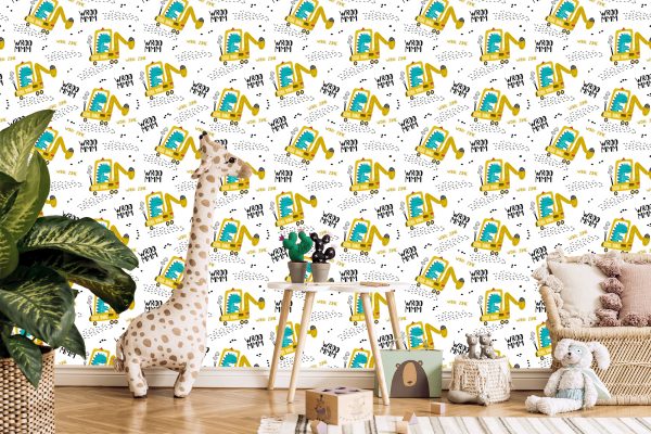 Papier Peint Pour L'excavatrice De Véhicules De Dinosaures De Garçon