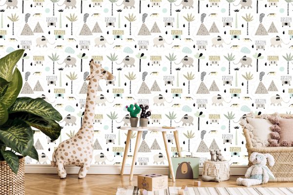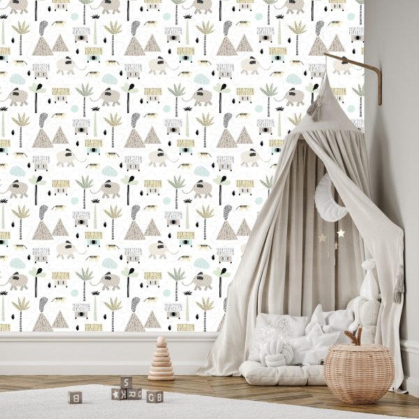 Papier Peint Pour Un Garçon, Animaux, Palmiers, Volcan