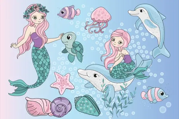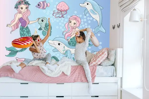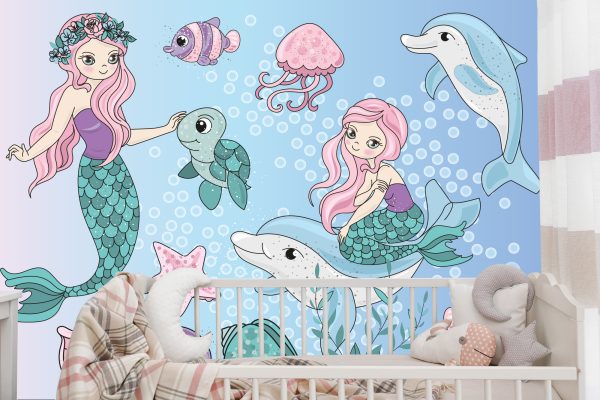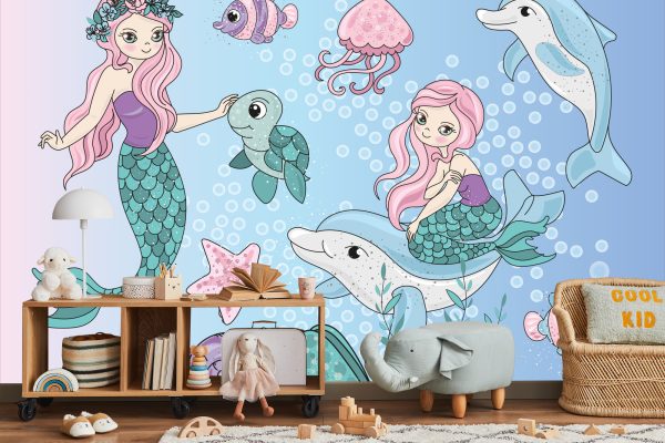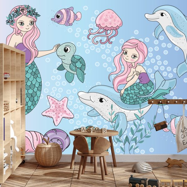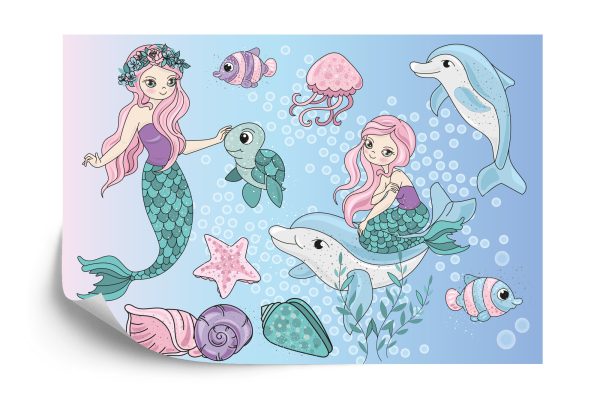 Papier Peint Sirènes Avec Des Animaux Marins